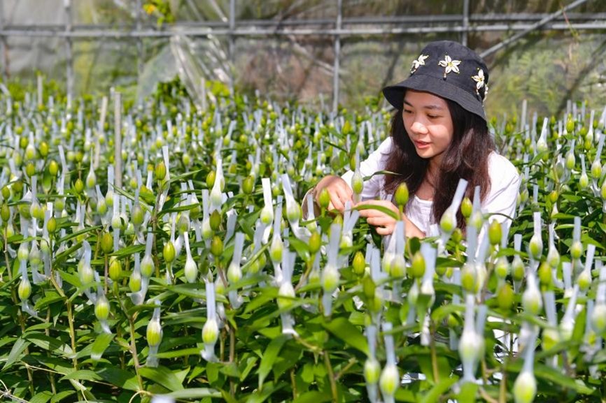 目前,阿里山百合種植面積約5公頃,每年產量約150萬枝,七成進入拍賣市場,三成銷往雲嘉南花店。郝鳳霽開心地指出,「花店業績逐年攀升,從5%、10%、20%到30%,令人欣慰。」這數字背後代表什麼?郝鳳霽表示,花店選擇花色不選品種,有效減少生產選別壓力。降低管銷費用,帶給消費者安全感,未來將複製嘉義經驗到南部市場。