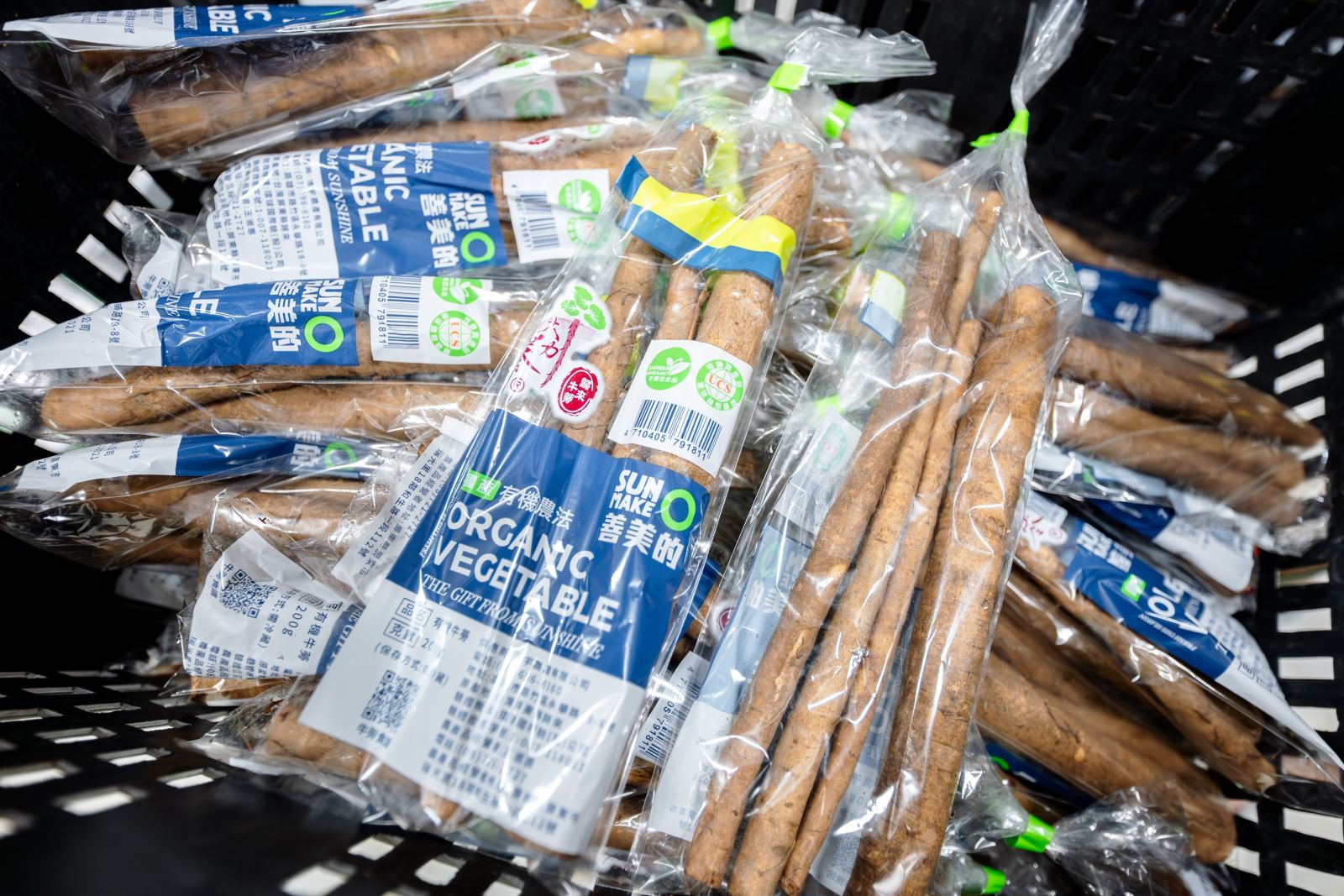 圖11、新鮮的牛蒡,部分以自有品牌「大力蔘」走百貨超市、大賣場銷售;部分採客製化包裝供應有機商店銷售。