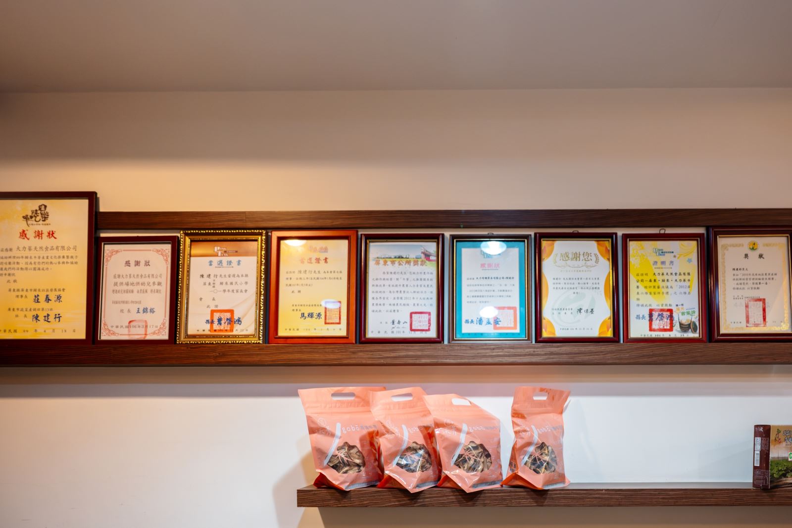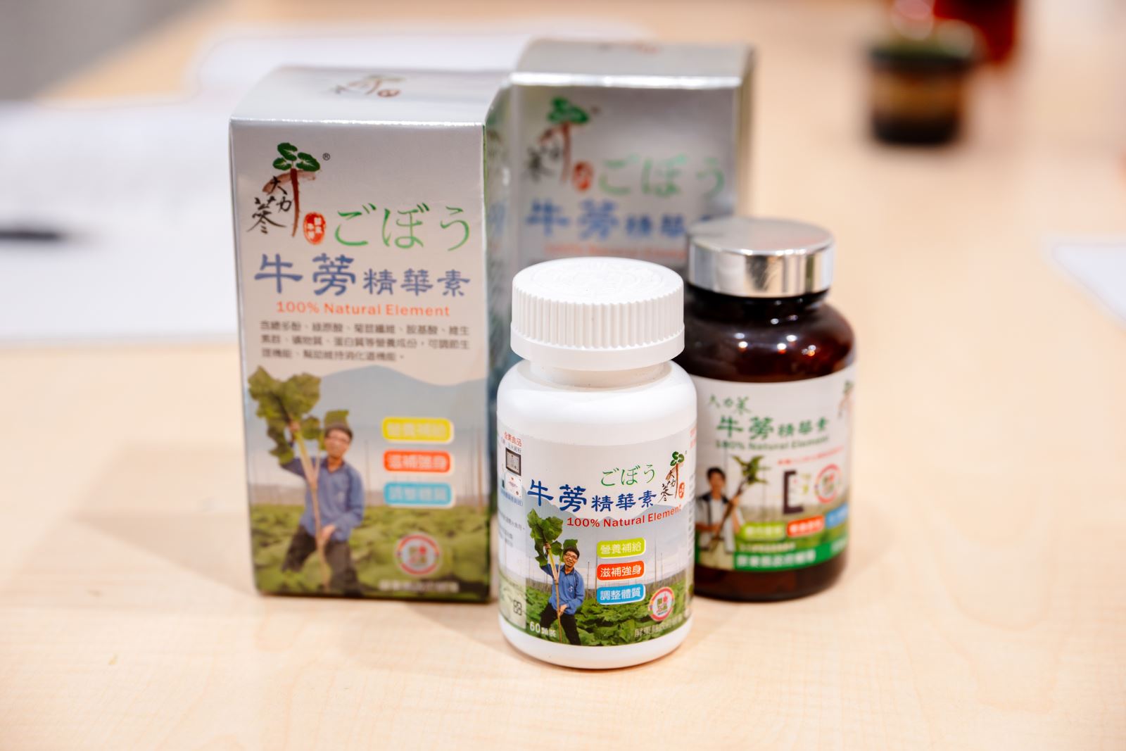 圖22、陳建行以及「大力蔘」品牌為主體的有機牛蒡產品,獲獎無數。